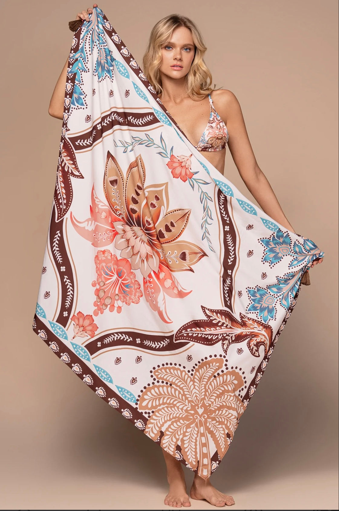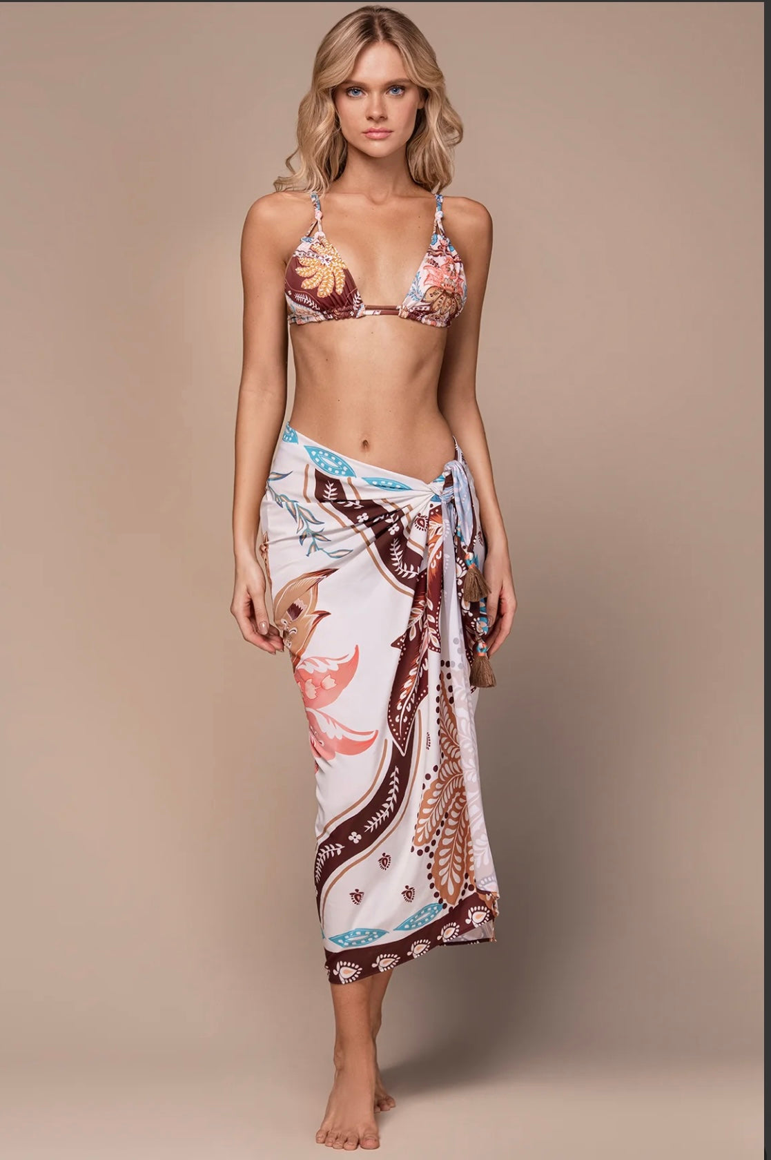 Eleva tu look de playa con el pareo Julia, una pieza fundamental por su increíble versatilidad que se adapta a cada momento, ya sea anudado a la cintura o como un elegante vestido. Su diseño ligero y de secado rápido te permite pasar sin esfuerzo de un outfit de bikini a uno de almuerzo sin perder el estilo.