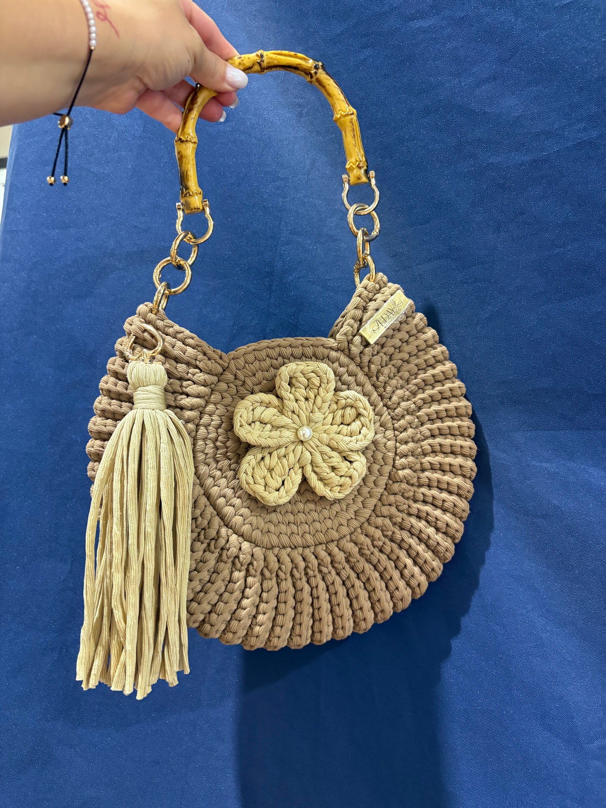 Elegancia natural y encanto artesanal se unen en nuestra colección Bamboo Chic. Disponible en dos estilos: el coqueto bolso tipo saquito y el encantador modelo caracol con detalle de flor, ambos con mangos de bambú que aportan un toque tropical y sofisticado.